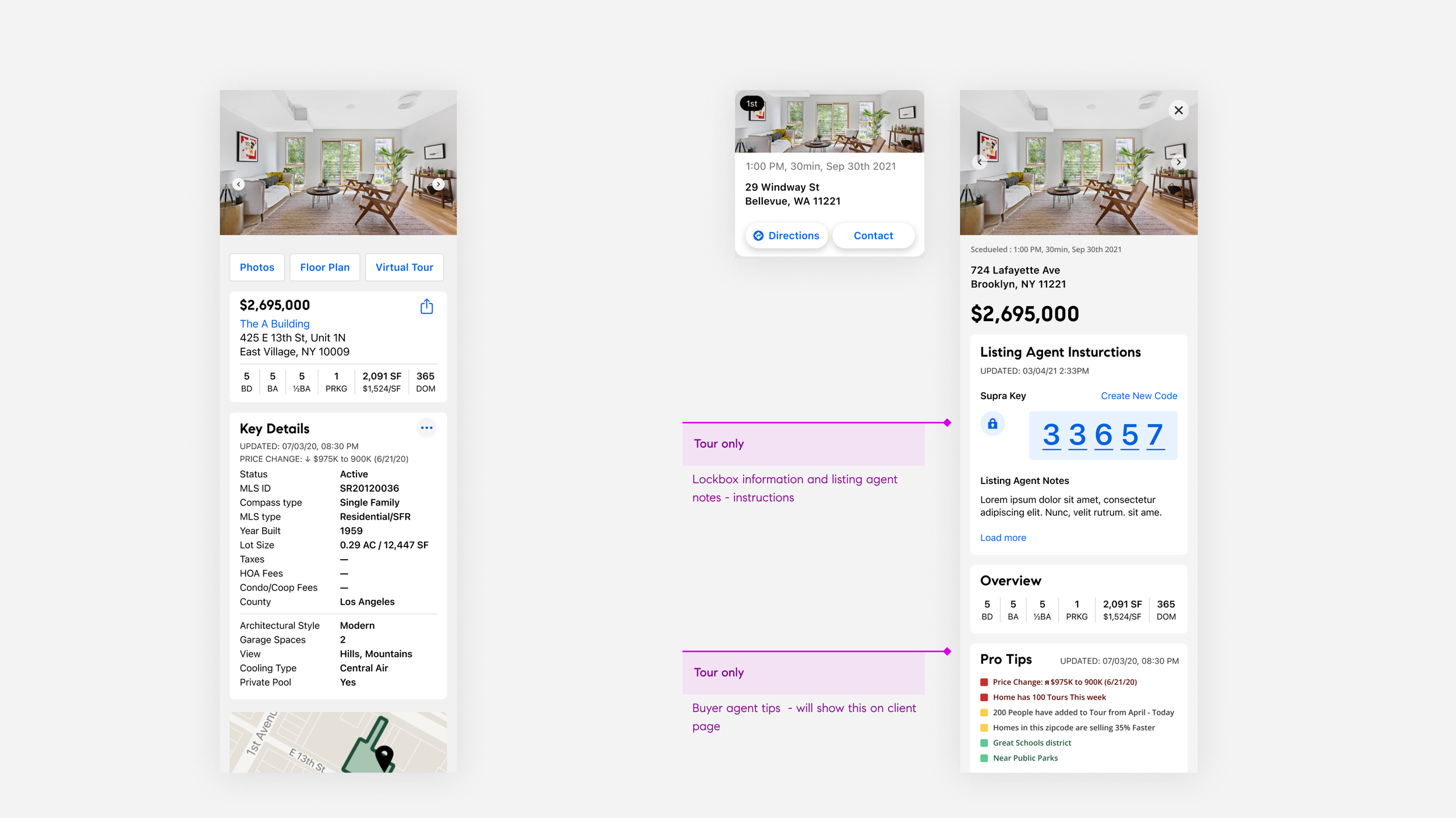 Agents would be able to see instructions and lockbox information provided by the listing agent. Our agents could also write notes about the tour listings which would be synced to the client tour listing page automatically.
